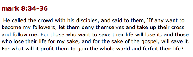 It emerged from our study of Mark 8:34-36, where I asked them to paraphrase what Jesus is saying. One of our adult leaders offered “Follow Jesus or Die,” and for the rest of the night the phrase was a mantra. I’m not encouraging it, but I’ll give it it’s own legs and see where it goes.